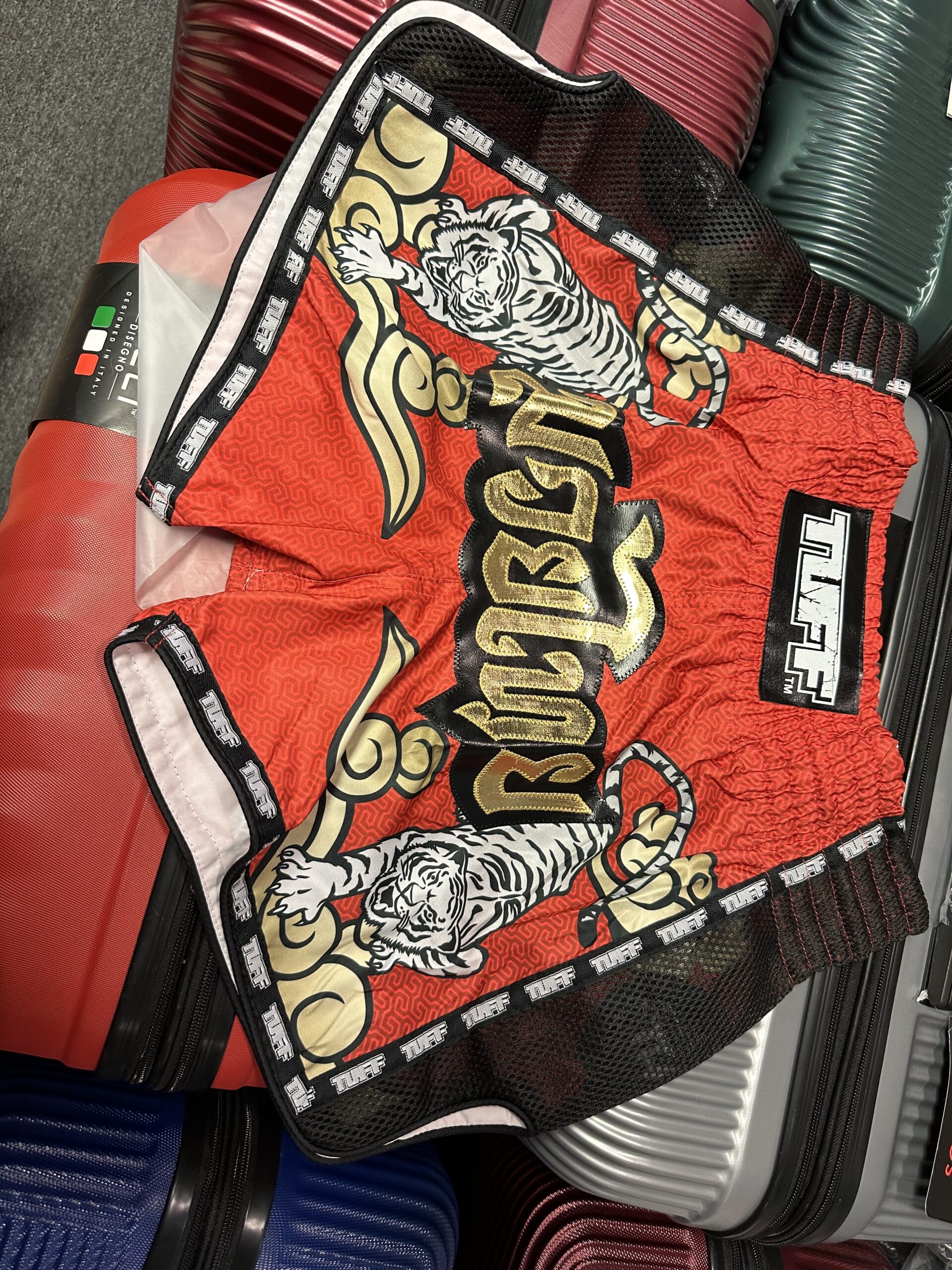 TUFF Sports Muay Thai Shorts are constructed from 100% polyester satin, offering durable strength. Shorts feature a traditional wide elastic waistband for functional comfort and support. The side mesh panels are specifically designed to increase ventilation. A wider leg opening makes for an unrivaled range of motion, keeping your moves clever and quick. Ultimate mobility and rugged durability lets you work harder than everyone else. Sweat more. Train longer, faster.
